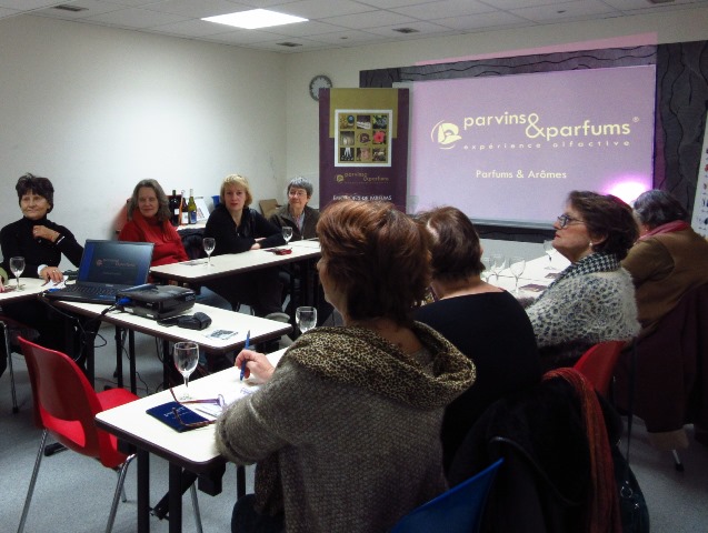 Un après- midi "Parfums & Arômes" a été organisé pour faire découvrir, à ces participantes, le lien entre parfums et arômes de vins, dans une ambiance joyeuse et conviviale.